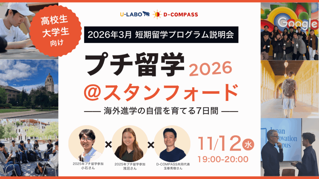 | 説明会タイトル | 「プチ留学@スタンフォード」説明会 |